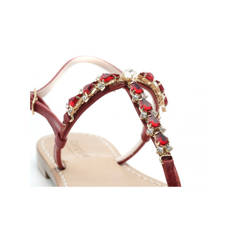 Jewel sandals with red leather base and red Swarovski stones