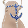 Discover the elegance of these blue anchor jeweled sandals, the perfect balance between nautical style and summery sophistication. Crafted with attention to detail, these sandals adorn the foot with a bright blue anchor decoration, a symbol of freedom, the sea, and vacation.