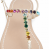 These multicolored jeweled sandals are the perfect balance of elegance, craftsmanship, and summer style. Crafted from premium leather with a platinum-colored upper, these sandals enhance the foot with a luminous and sophisticated touch.