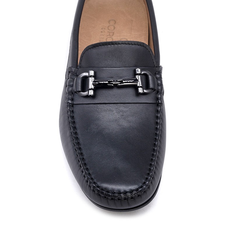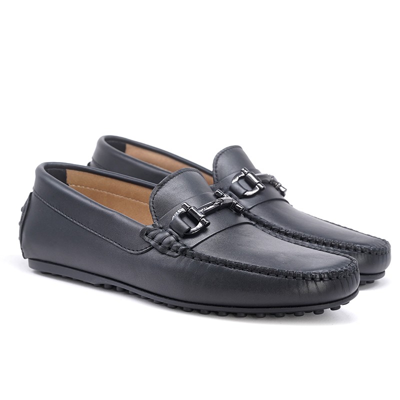 Men's black leather moccasins with buckle