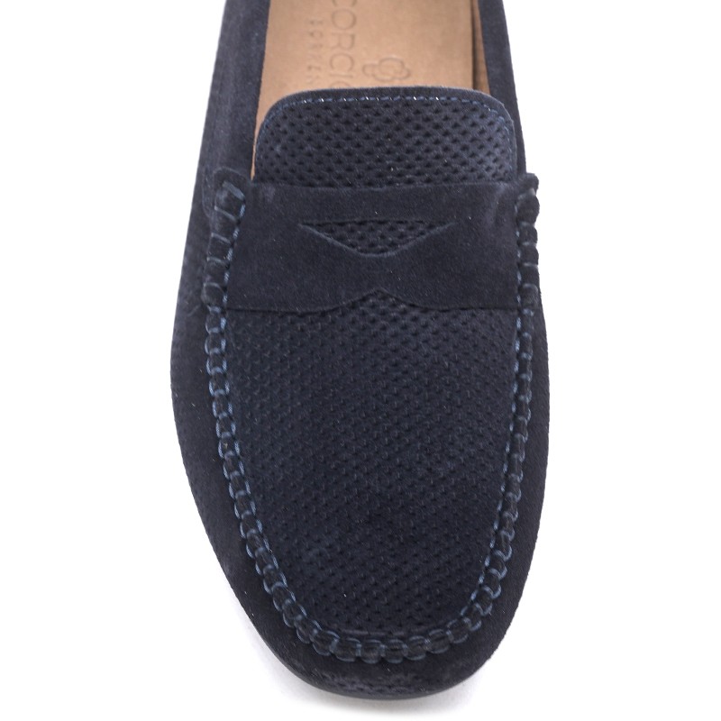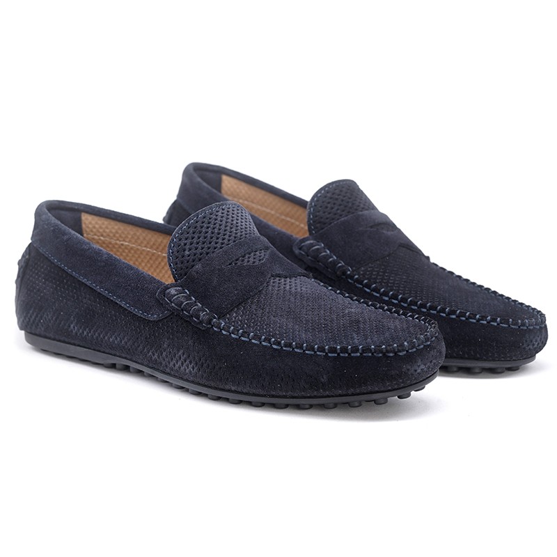 Men's blue suede loafs with holes