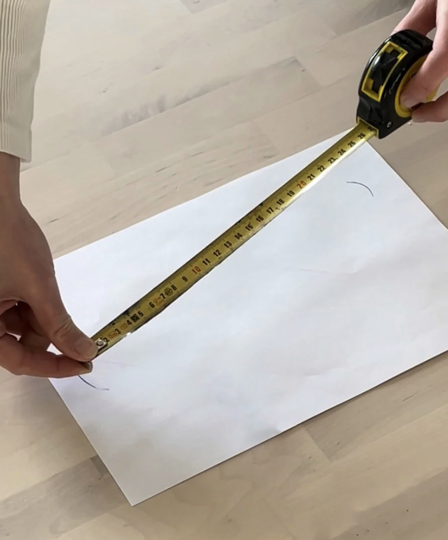 Con un righello, misura la distanza tra i due trattini che hai segnato nella fase precendente: otterrai così la lunghezza del tuo piede. Ora puoi confrontarla con la tabella taglie della scarpa che ti piace di più!