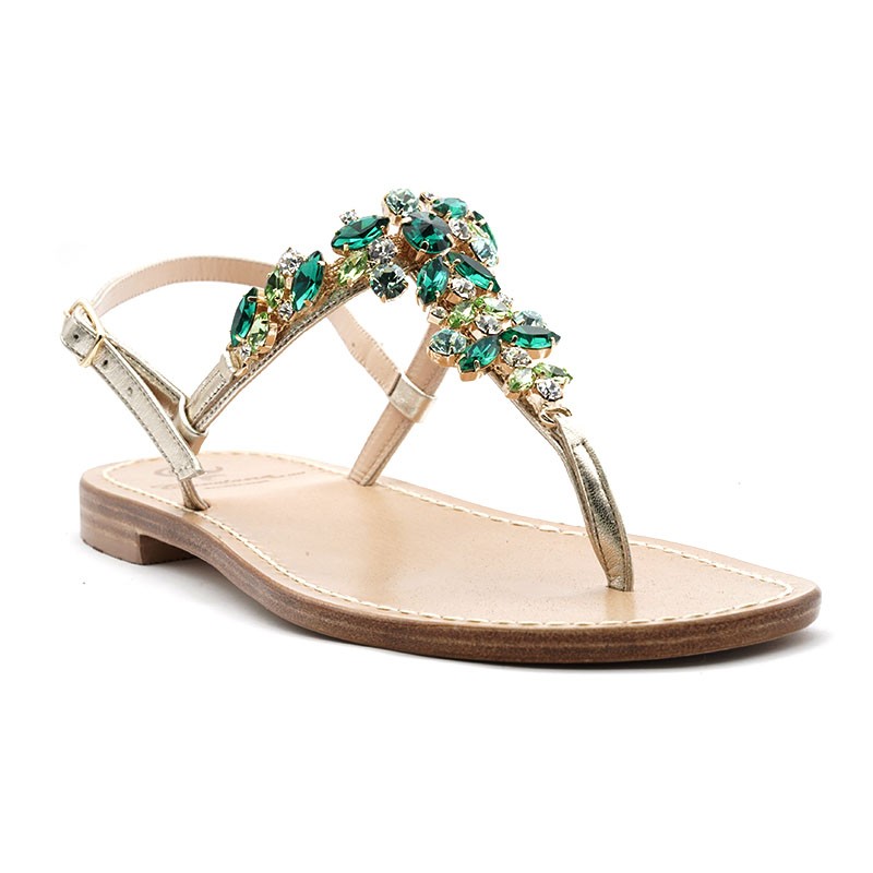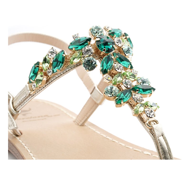 Sandali gioiello infradito oro con pietre Swarovski e preciosa