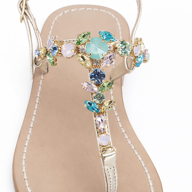 I nostri sandali sono assemblati con pietre Swarovski (Swarovski® è un marchio registrato di Swarovski AG) e Preziosa.