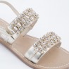 Sandali gioiello in pelle argento con pietre di cristallo