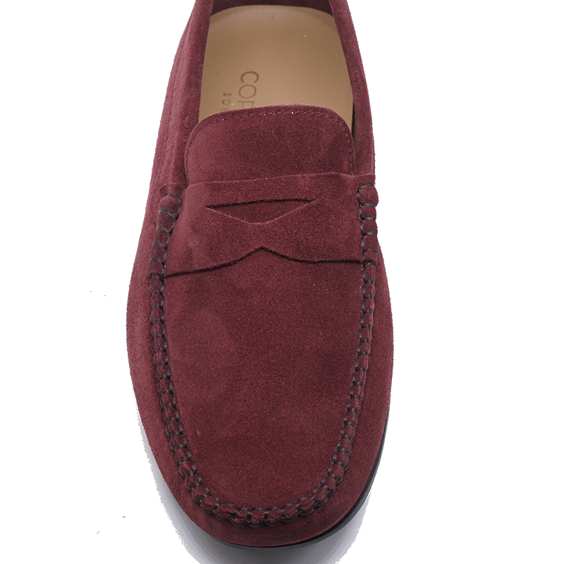 Mocassini da uomo in morbido camoscio color bordeaux, eleganti e versatili. Il design classico si abbina facilmente sia a look casual che più raffinati, offrendo comfort e stile in ogni occasione. La finitura in camoscio dona un tocco sofisticato, mentre la calzata comoda li rende perfetti per l’uso quotidiano.