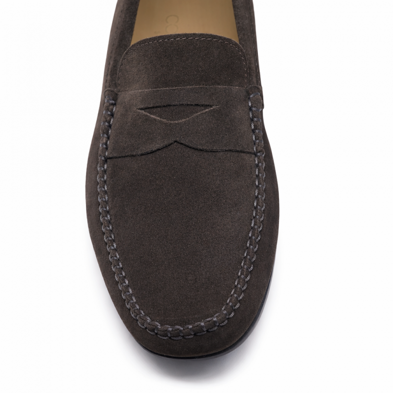 Mocassini da uomo in camoscio color testa di moro, eleganti e versatili. Il design classico li rende perfetti per completare sia look casual che outfit più raffinati. Morbidi, confortevoli e curati nei dettagli, sono ideali per chi cerca stile e praticità in ogni occasione.